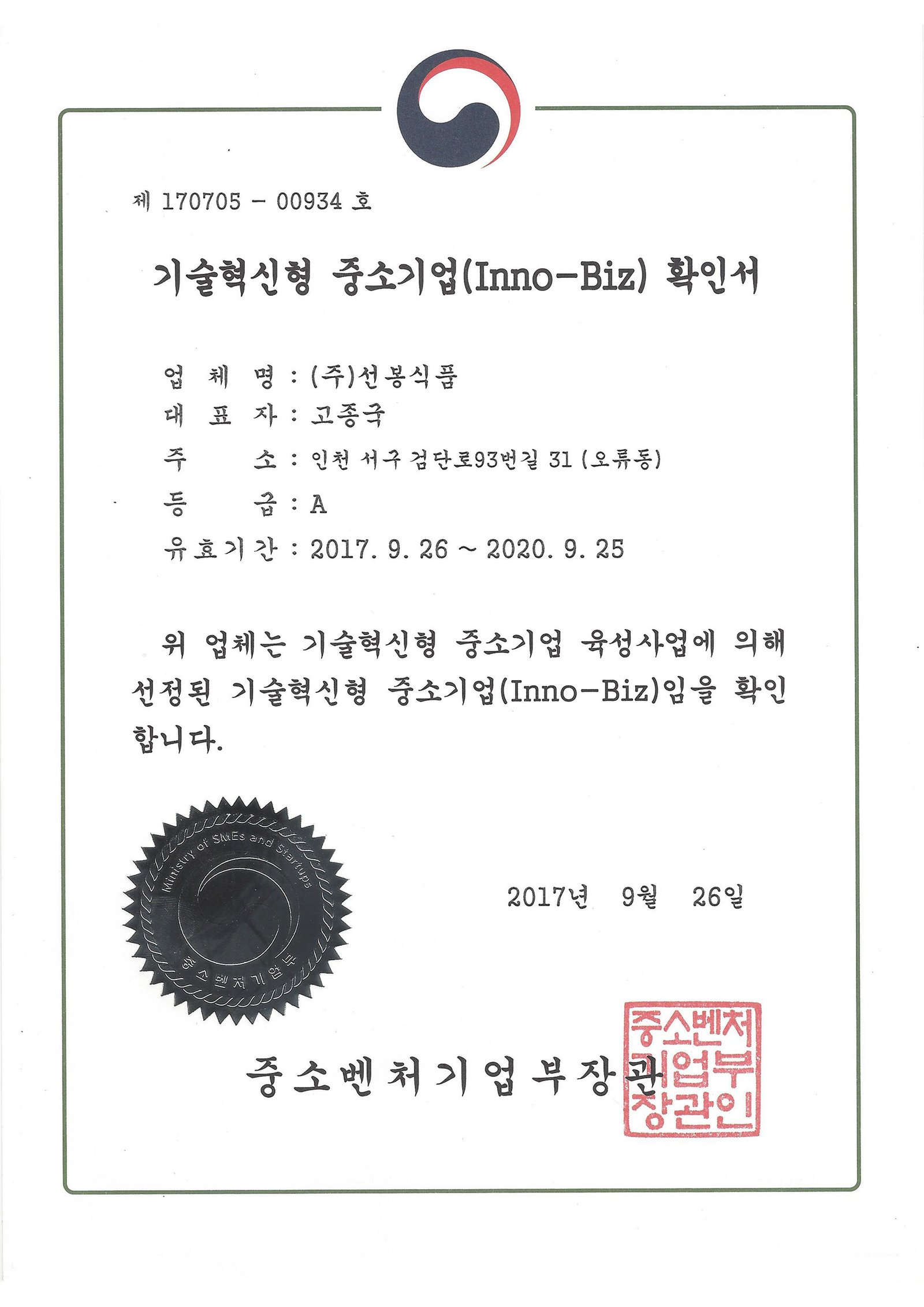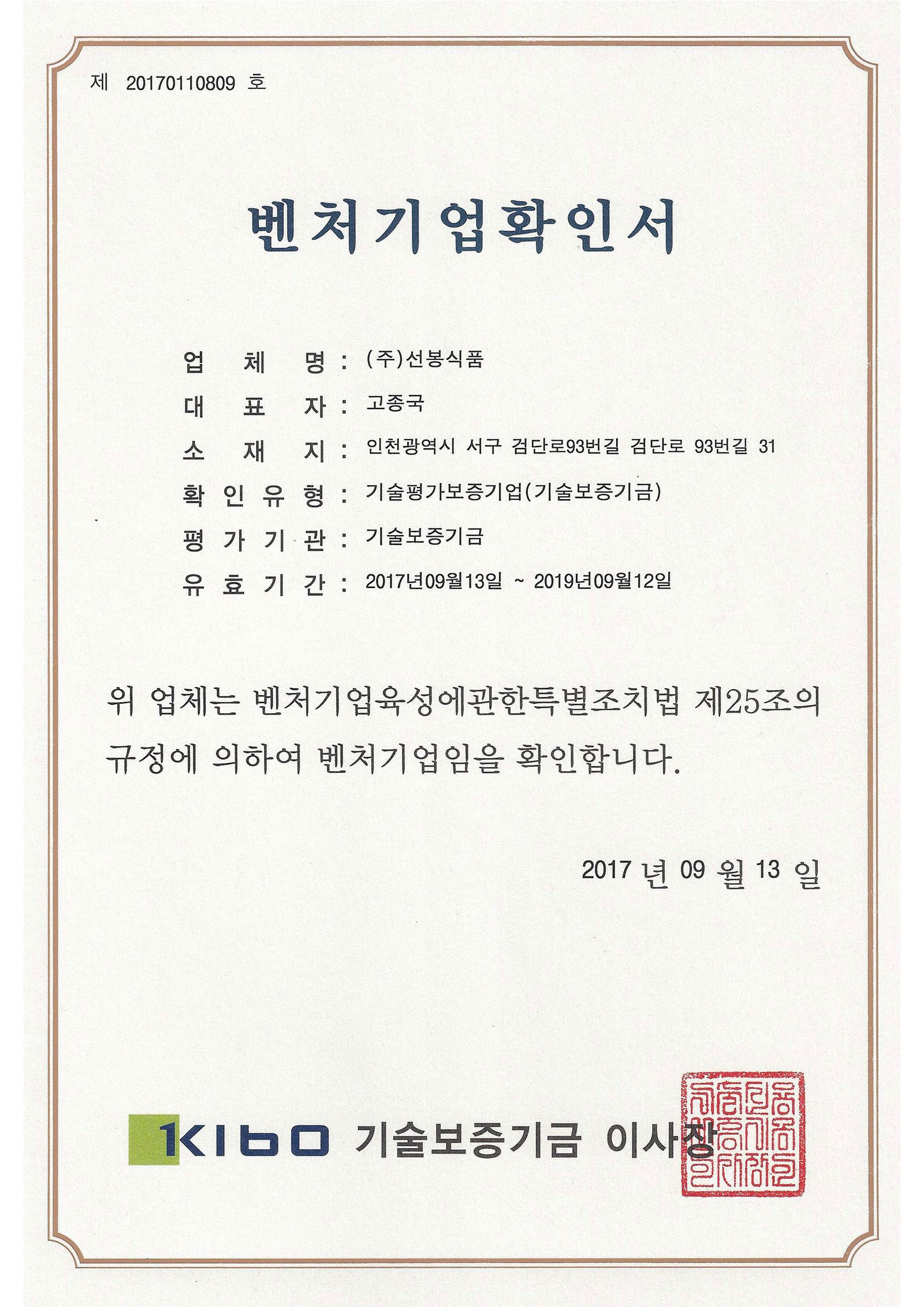 주) 선봉식품 I 대표 : 고종국 I 사업자등록번호 : 137-86-33170 | 통신판매업신고번호 : 제 서구 2006-122호 개인정보관리자 : (주)선봉식품 I E-Mail : koo-ng@hanmail.net | 주소 :인천광역시 서구 검단로 93번길 31(오류동 1644-20) 고객센터 : 032-581-8100 I 팩스 : 032-581-0284 | 쇼핑몰 : www.sunbongmall.com