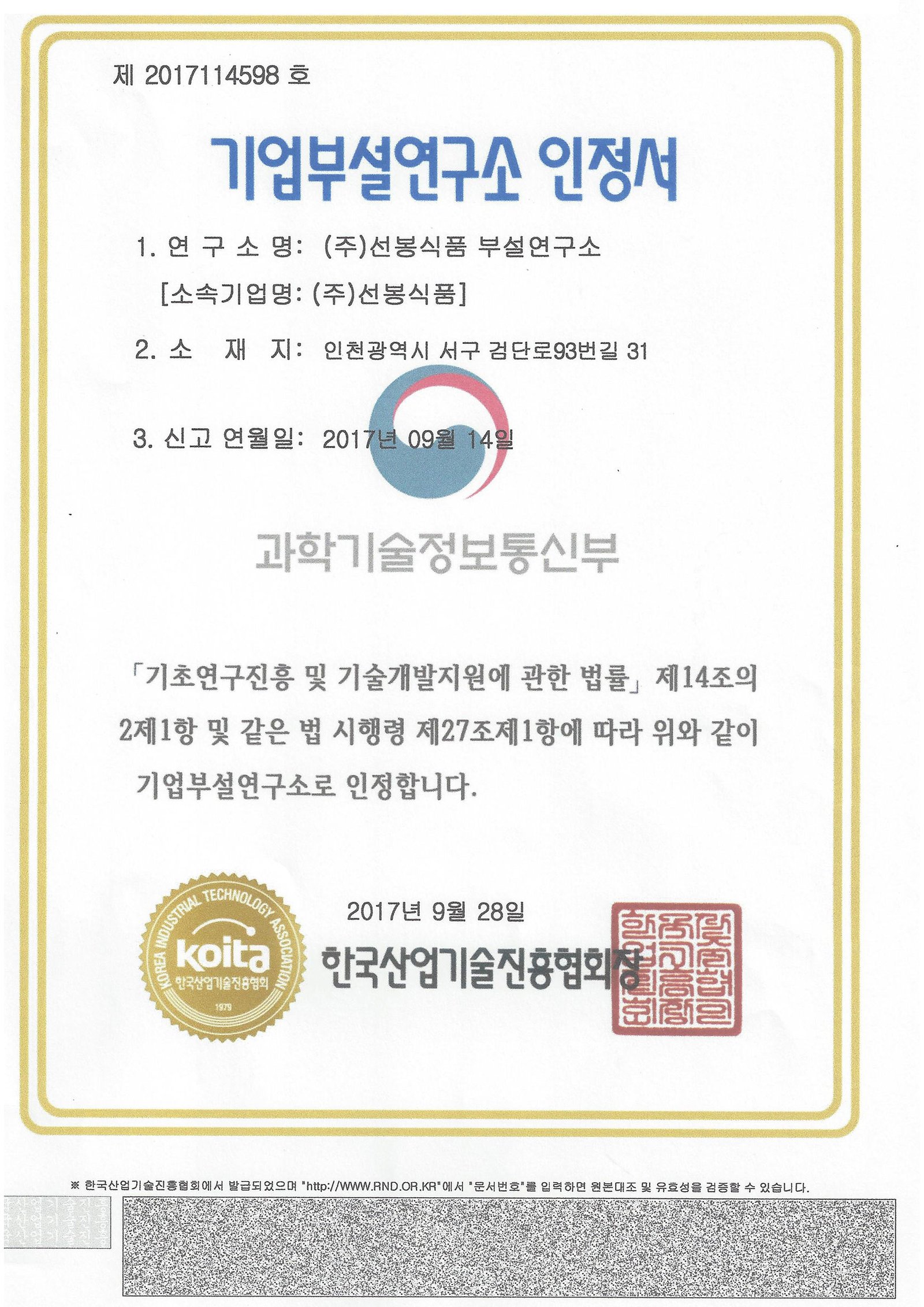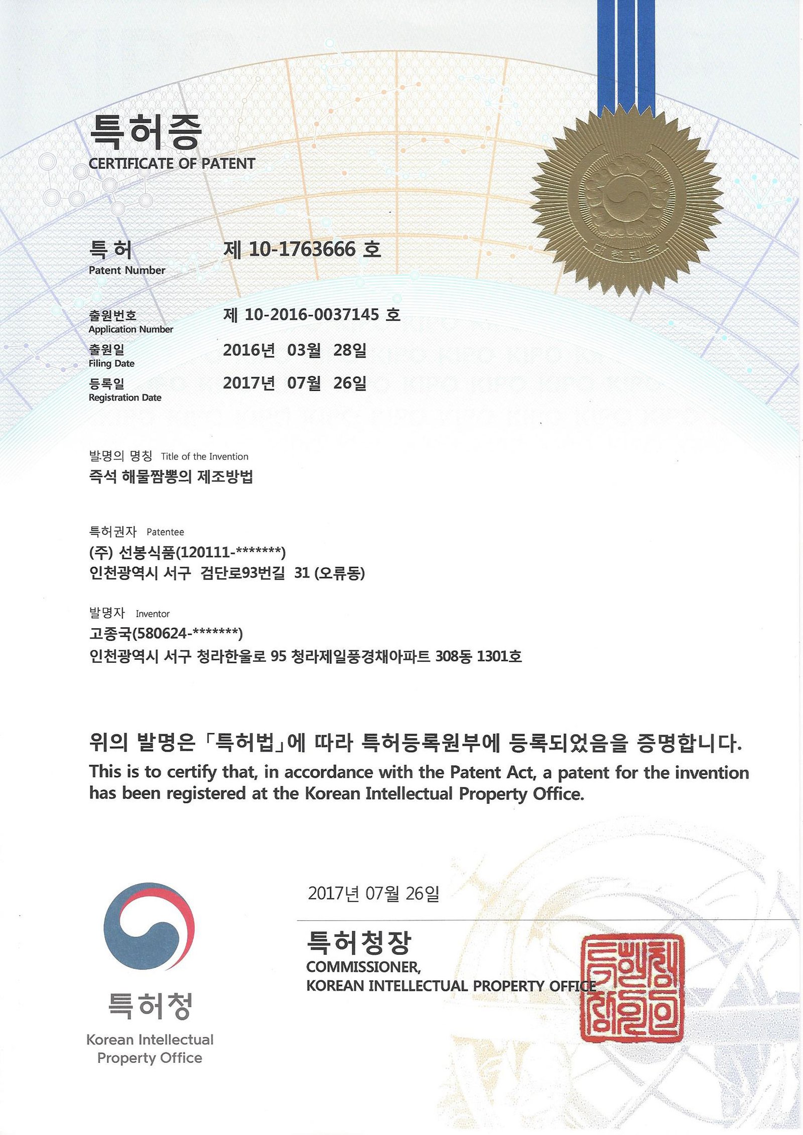 각종 인증과 특허는 안전한 원료, 정직한 공정, 그리고 품질에 대한