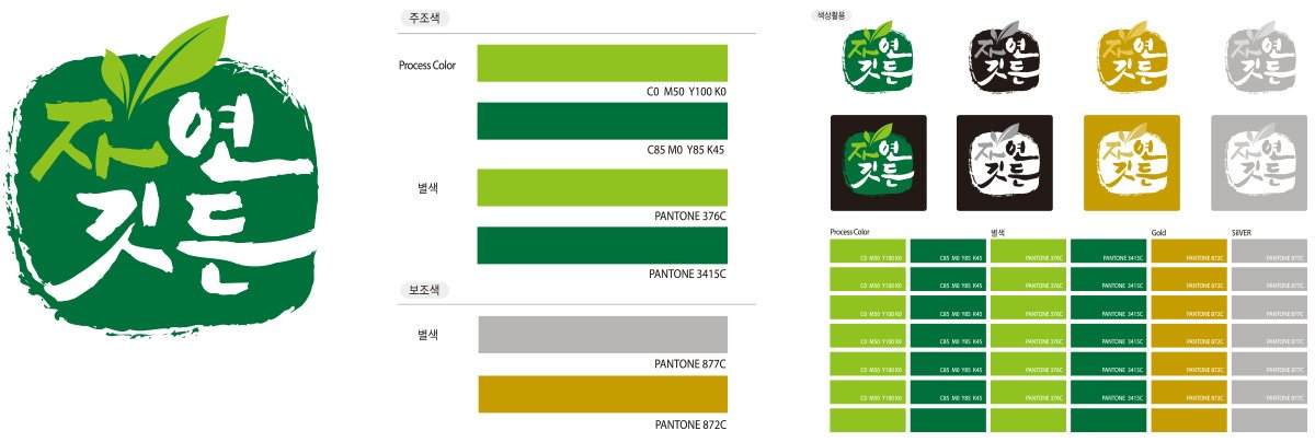 전용색상은 Symbol Mark, Logotype과 더불어 ‘자연깃든’의 이미지를 가장 기본적인 요소 중의 하나이다. 전용색생 체계는 크게 주 색상군와 보조 색상군 활용색상군으로 구분하여 활용한다. 또한 본 항에 예시된 색상을 사용코자 할 경우에는 매뉴얼 재생 자료편에 수록된 견본 색상표를 활용토록 하여 실행에 차질이 없도록 한다.